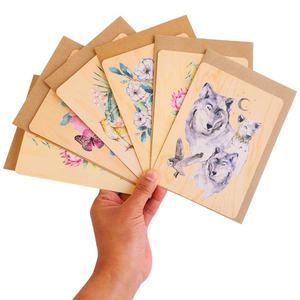 Elevate your gifting game with our one-of-a-kind Wood Veneer (not plywood) Greeting Cards. Crafted from 100% natural maple wood, each card is a work of art in itself. It uses 50% less wood compared to paper equivalent cards! Crafted from sustainably sourced wood, our cards are not only beautiful but also eco-friendly & biodegradable. They are a lasting keepsake that your loved ones will cherish.