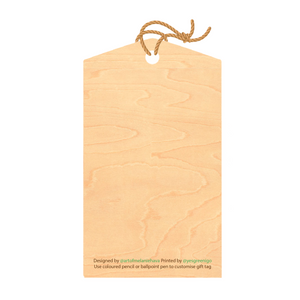 Bored of the usual card tags? Elevate your gift-giving experience with our one-of-a-kind Wood Gift Tag (not plywood), carefully crafted from 100% natural maple wood veneer. Each tag is a work of art, featuring a unique illustration that adds a touch of elegance to any present. Whether you're sending a gift to someone special in your life or you simply want to make your presents stand out, our wooden gift tags are the perfect choice.