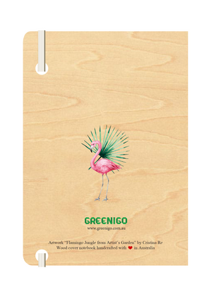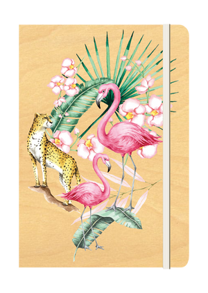 B6 Wood Cover Notebook (Lined) - Flamingo Jungle