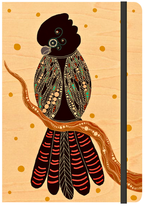 A5 Wood Cover Journal (Blank) - Gidila (Red Tailed Black Cockatoo)